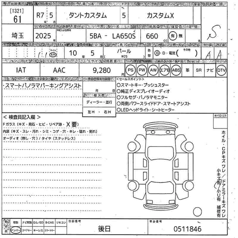 Статус выставлен на аукцион Лот 61 Аукцион MIRIVE Saitama Дата аукциона 11.03.2026