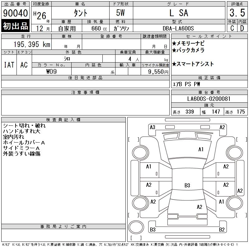 DAIHATSU TANTO 2014 г., лот № 90040