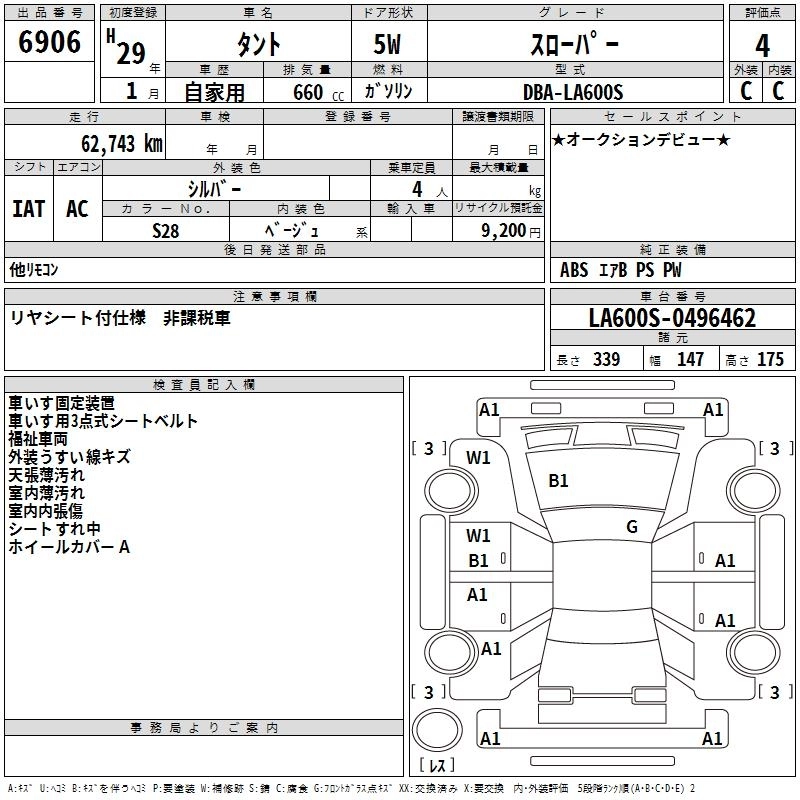DAIHATSU TANTO 2017 г., лот № 6906