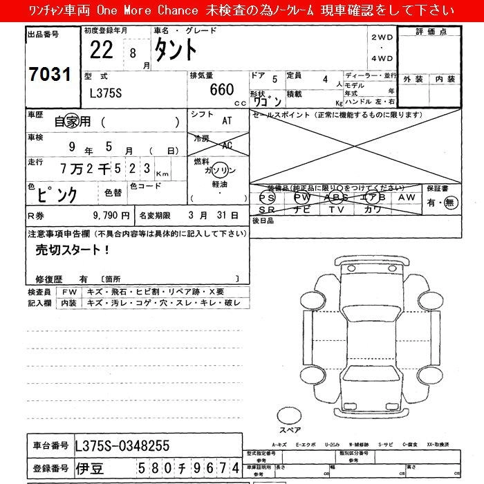 Статус выставлен на аукцион Лот 7031 Аукцион JU Shizuoka Дата аукциона 10.03.2026