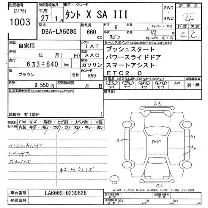 DAIHATSU TANTO 2015 г., лот № 1003