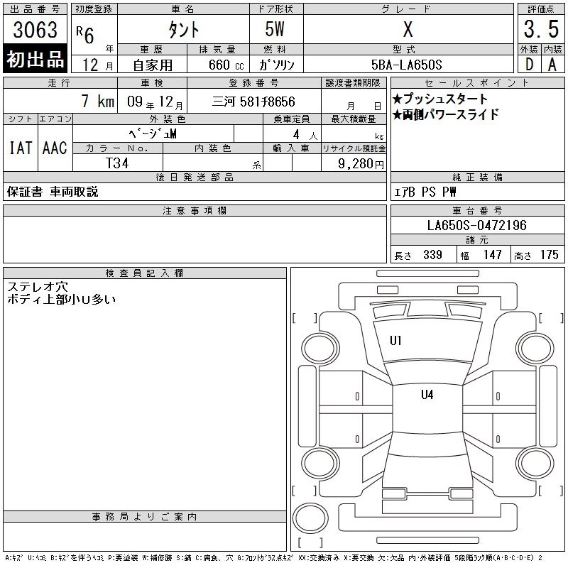 Статус выставлен на аукцион Лот 3063 Аукцион CAA Chubu Дата аукциона 11.03.2026