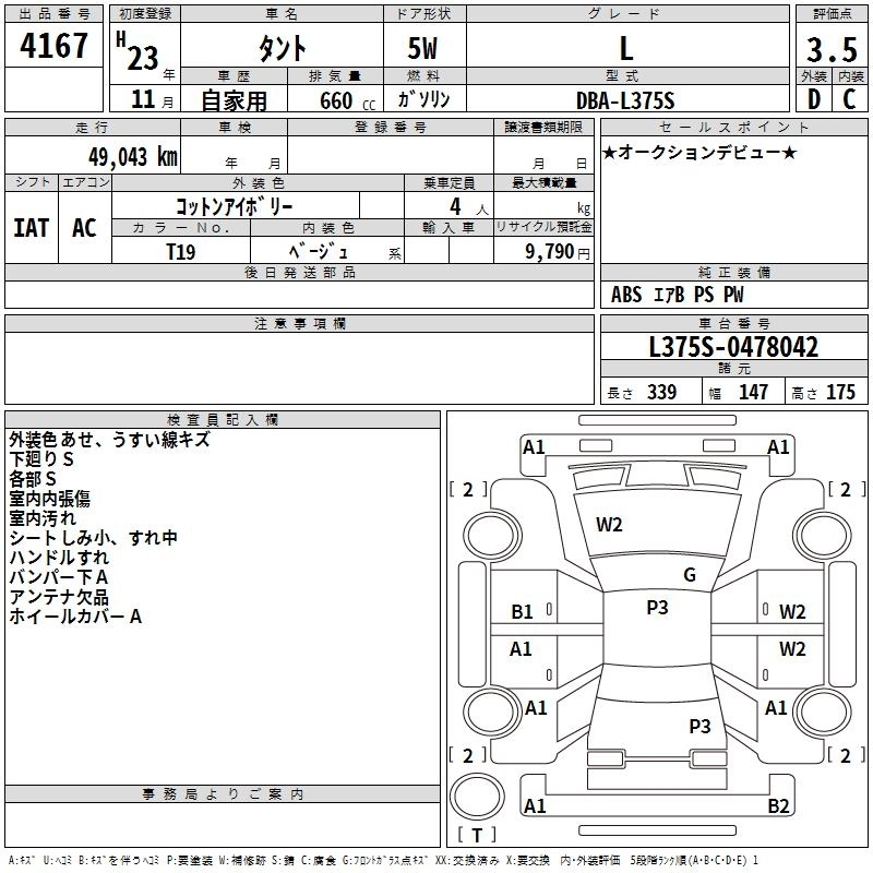 DAIHATSU TANTO 2011 г., лот № 4167