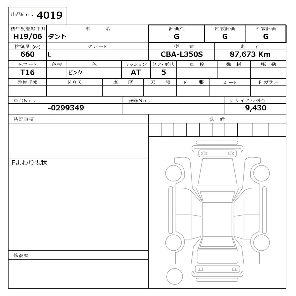 Статус продан Лот 4019 Аукцион Nissan Osaka Дата аукциона 09.03.2026