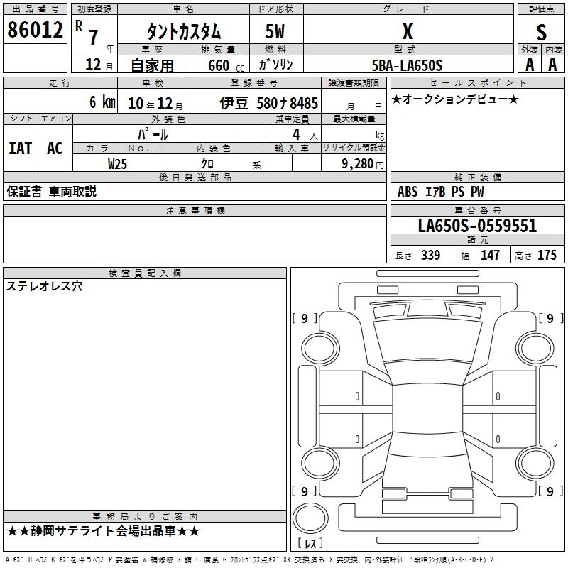 Статус выставлен на аукцион Лот 86012 Аукцион TAA Chubu Дата аукциона 12.03.2026
