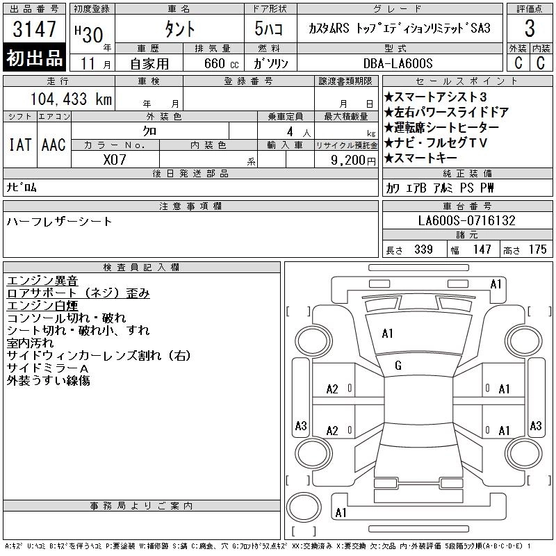 Статус выставлен на аукцион Лот 3147 Аукцион CAA Chubu Дата аукциона 11.03.2026