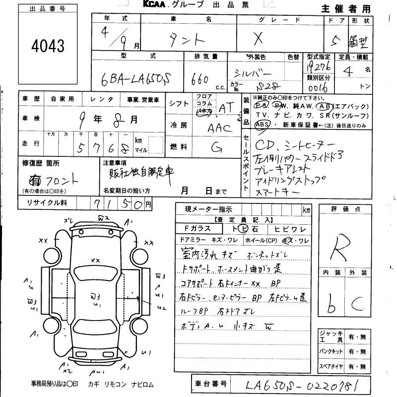 Статус не продан Лот 4043 Аукцион KCAA Fukuoka Дата аукциона 12.03.2026