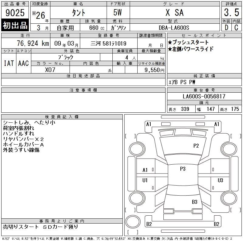 Статус выставлен на аукцион Лот 9025 Аукцион CAA Chubu Дата аукциона 11.03.2026
