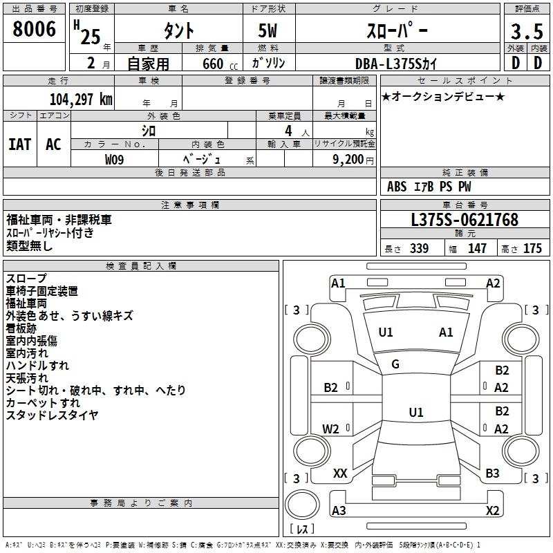 DAIHATSU TANTO 2013 г., лот № 8006