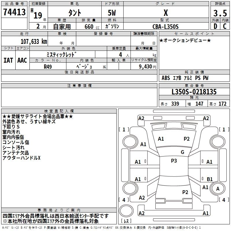 Статус выставлен на аукцион Лот 74413 Аукцион TAA Shikoku Дата аукциона 10.03.2026