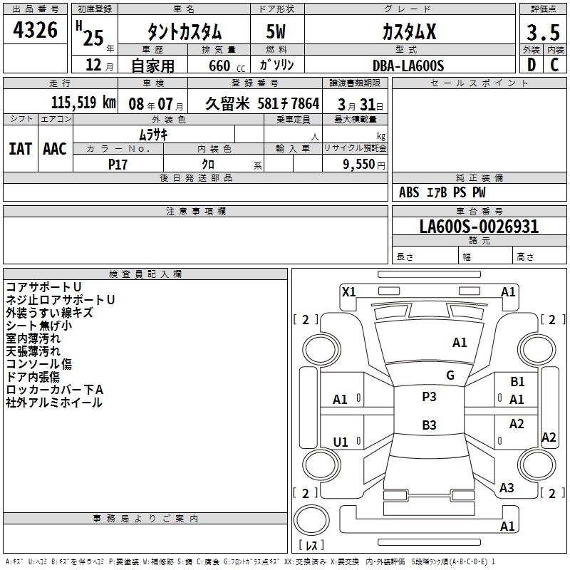 Статус продан Лот 4326 Аукцион TAA Kyushu Дата аукциона 10.03.2026