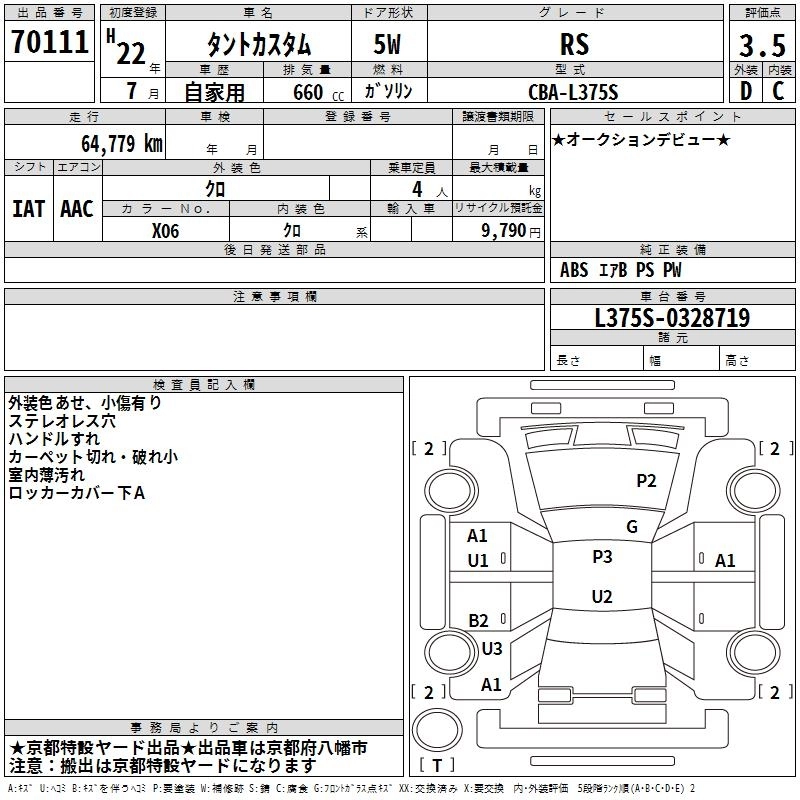 DAIHATSU TANTO 2010 г., лот № 70111