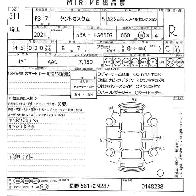 Статус выставлен на аукцион Лот 311 Аукцион MIRIVE Saitama Дата аукциона 11.03.2026