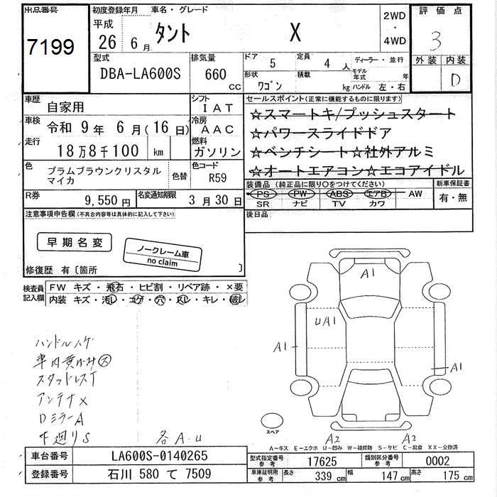 DAIHATSU TANTO 2014 г., лот № 7199