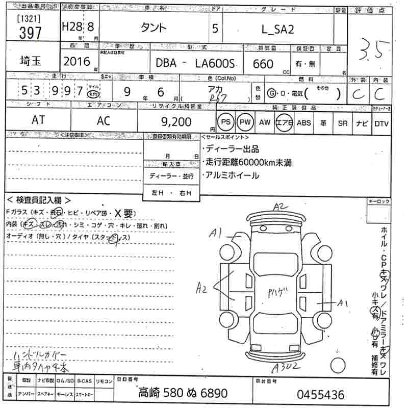 DAIHATSU TANTO 2016 г., лот № 397