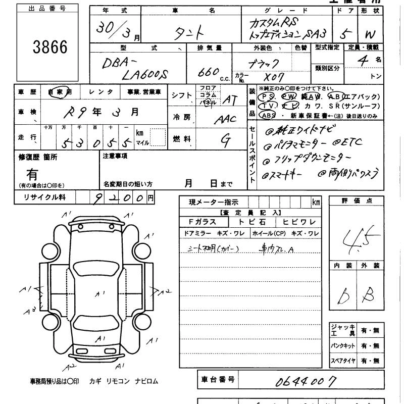 DAIHATSU TANTO 2018 г., лот № 3866