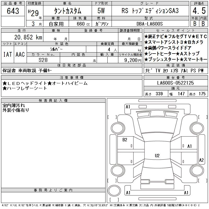 DAIHATSU TANTO 2017 г., лот № 643