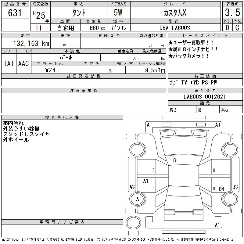 DAIHATSU TANTO 2013 г., лот № 631
