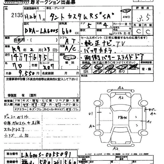 DAIHATSU TANTO 2014 г., лот № 2135