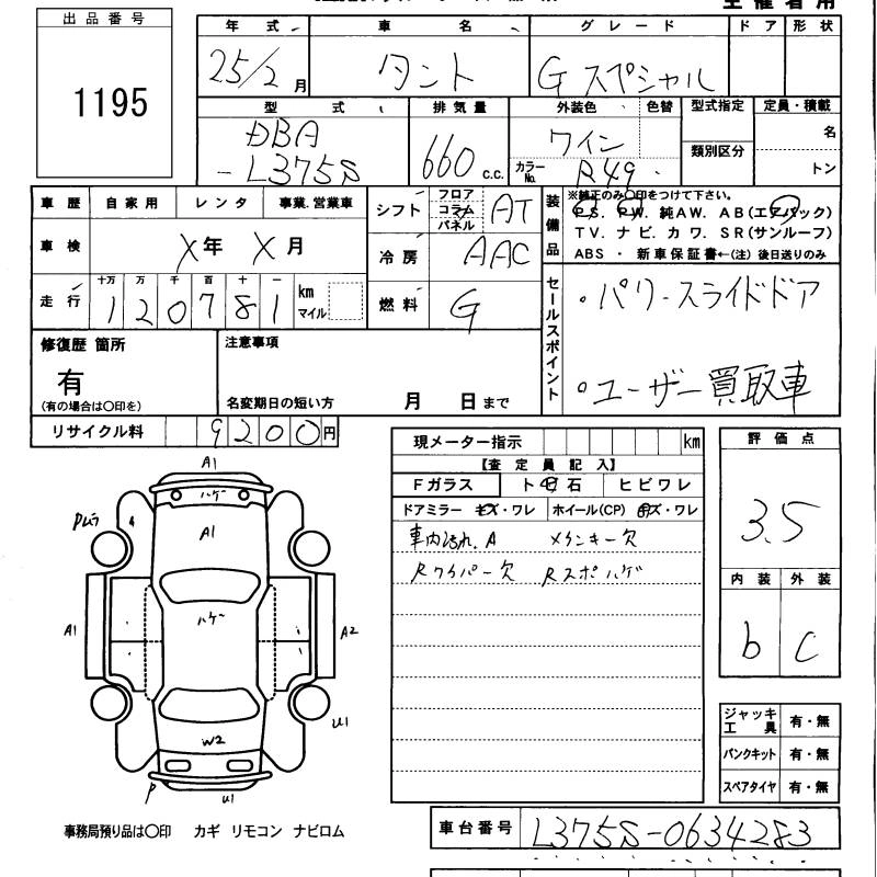 DAIHATSU TANTO 2013 г., лот № 1195