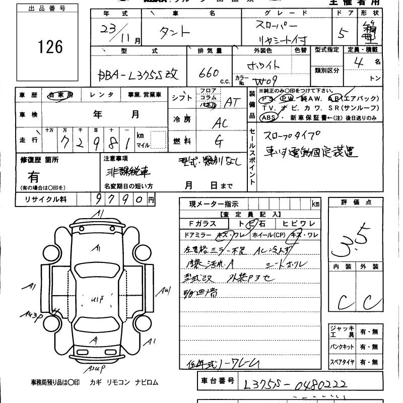DAIHATSU TANTO 2011 г., лот № 126