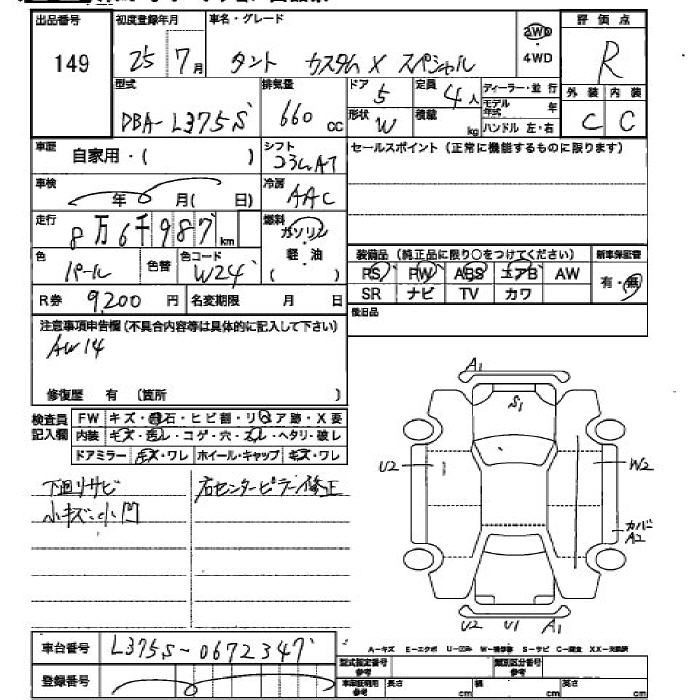 DAIHATSU TANTO 2013 г., лот № 149