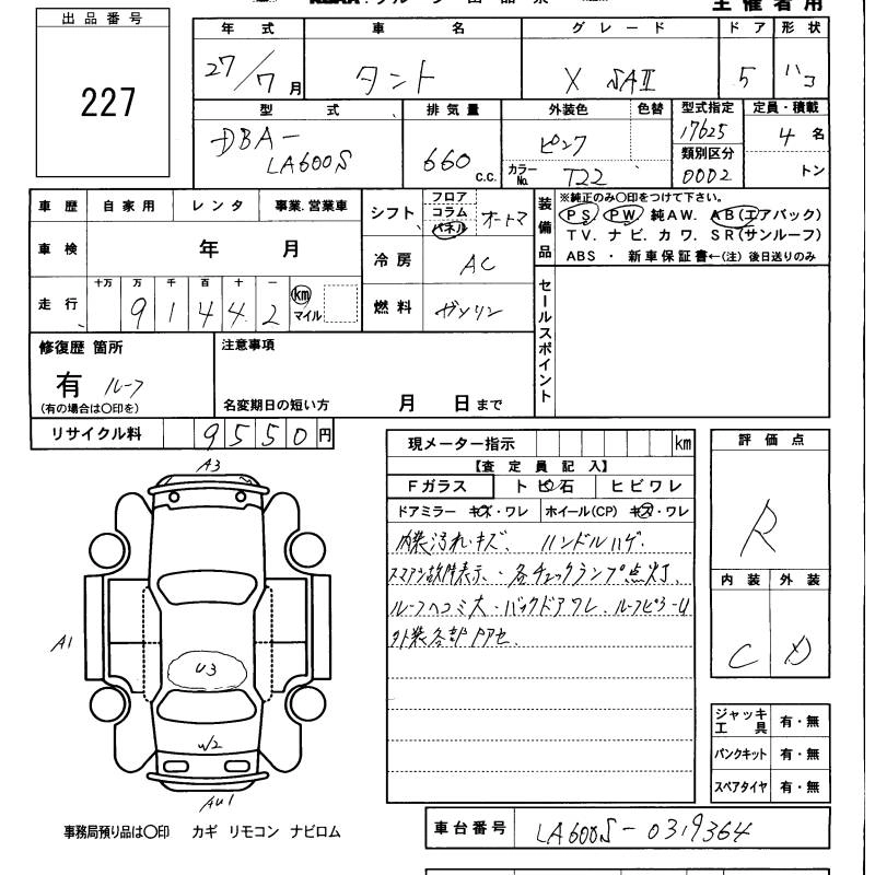 DAIHATSU TANTO 2015 г., лот № 227