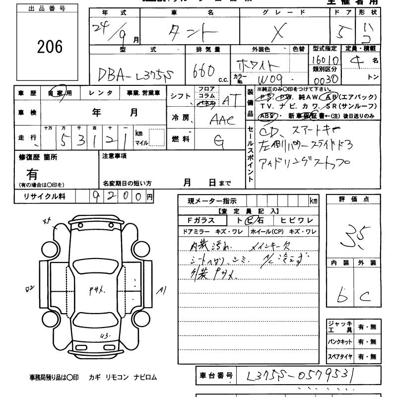 DAIHATSU TANTO 2012 г., лот № 206