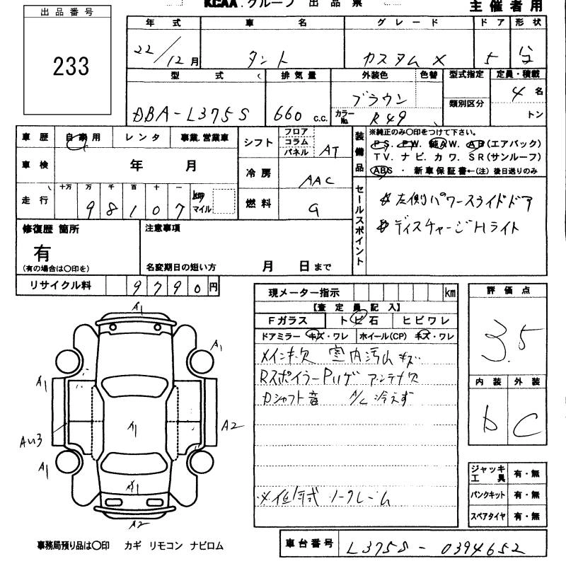 DAIHATSU TANTO 2010 г., лот № 233