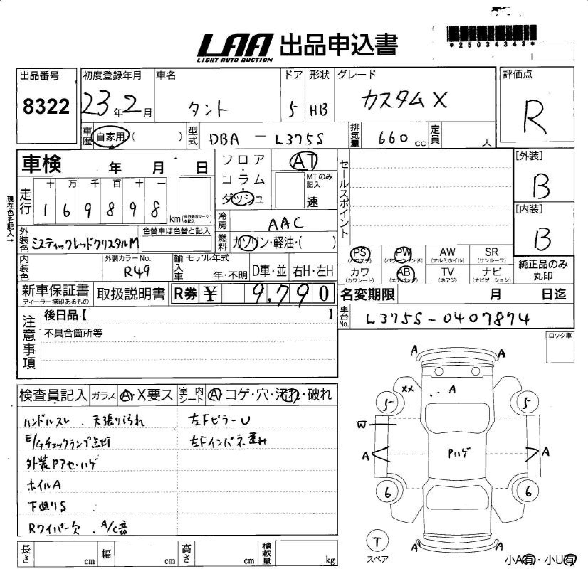 Статус выставлен на аукцион Лот 8322 Аукцион LAA Shikoku Дата аукциона 11.03.2026
