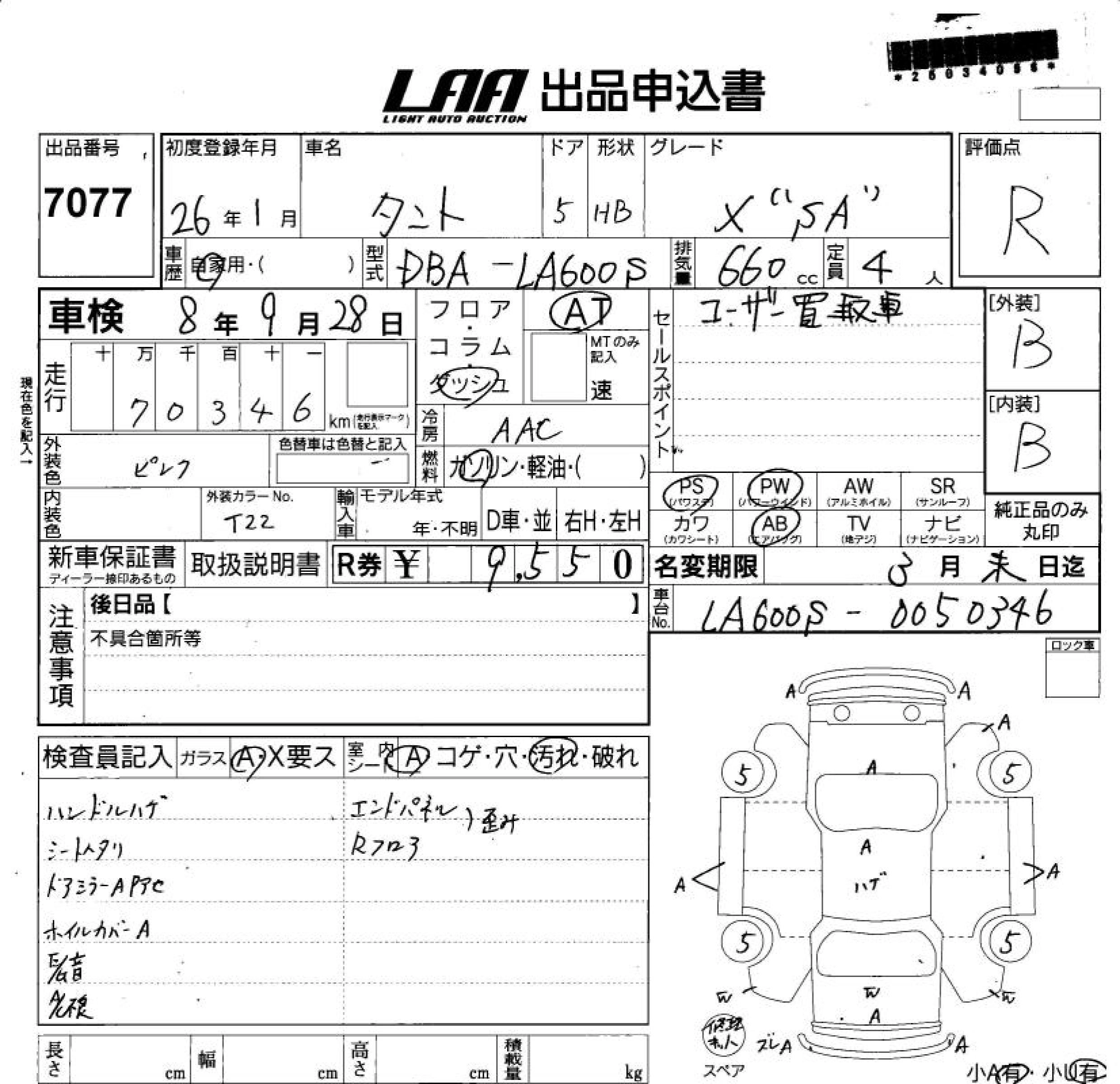 Статус выставлен на аукцион Лот 7077 Аукцион LAA Shikoku Дата аукциона 11.03.2026
