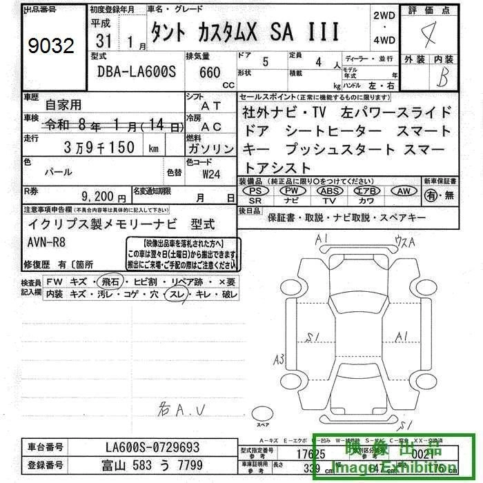 Статус выставлен на аукцион Лот 9032 Аукцион JU Toyama Дата аукциона 12.03.2026