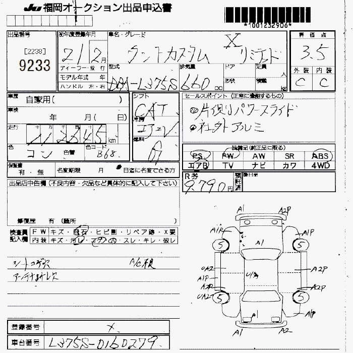 Статус выставлен на аукцион Лот 9233 Аукцион JU Fukuoka Дата аукциона 13.03.2026