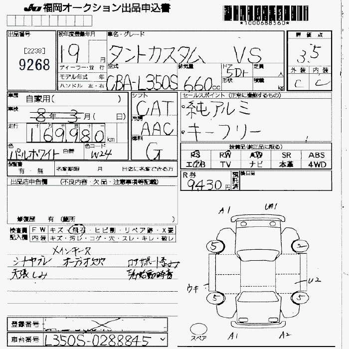 Статус выставлен на аукцион Лот 9268 Аукцион JU Fukuoka Дата аукциона 13.03.2026