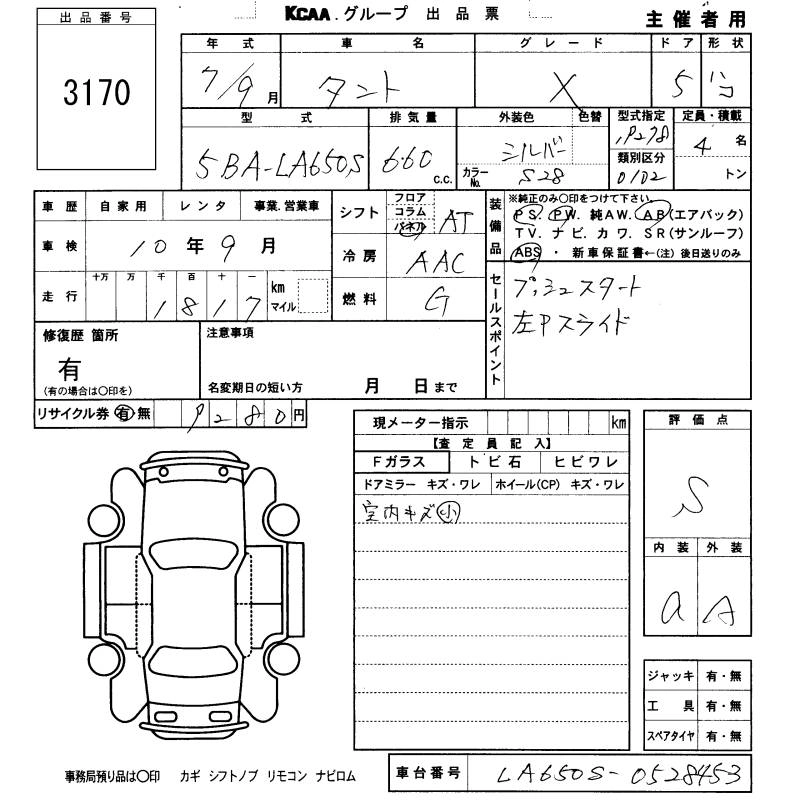 Статус выставлен на аукцион Лот 3170 Аукцион KCAA Fukuoka Дата аукциона 12.03.2026