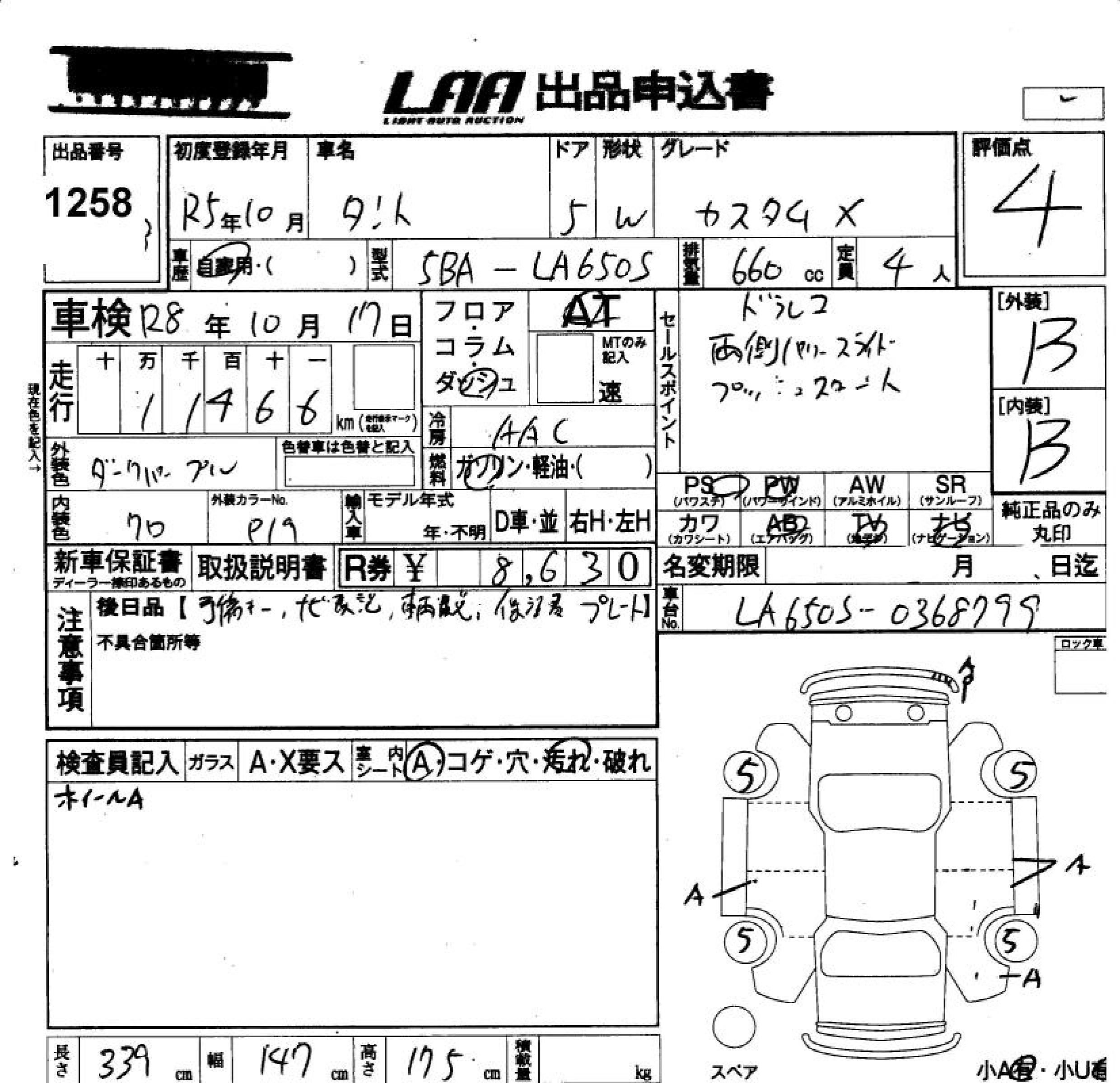 Статус выставлен на аукцион Лот 1258 Аукцион LAA Okayama Дата аукциона 13.03.2026