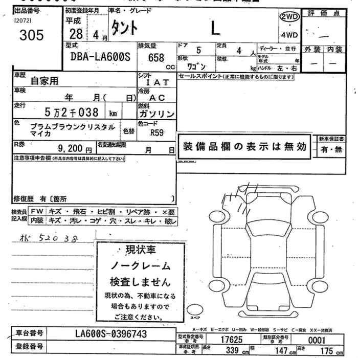 DAIHATSU TANTO 2016 г., лот № 305