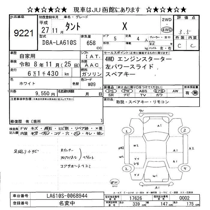 Статус выставлен на аукцион Лот 9221 Аукцион JU Hokkaido Дата аукциона 13.03.2026