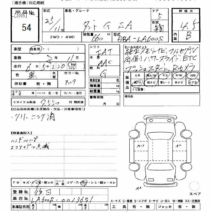 Год выпуска2013 Пробег 65 000 км КузовLA600S КомплектацияG SA