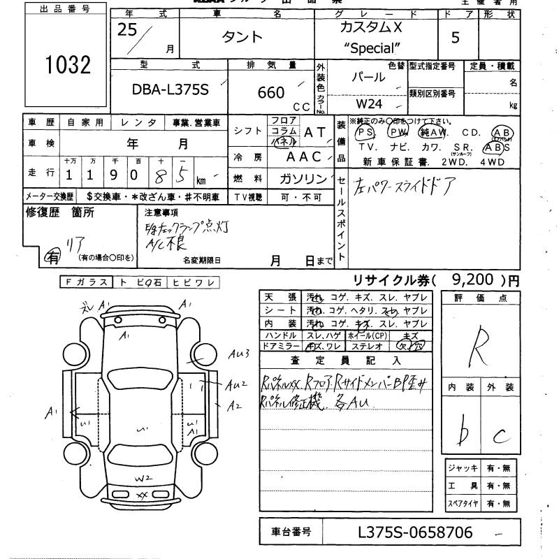 DAIHATSU TANTO 2013 г., лот № 1032