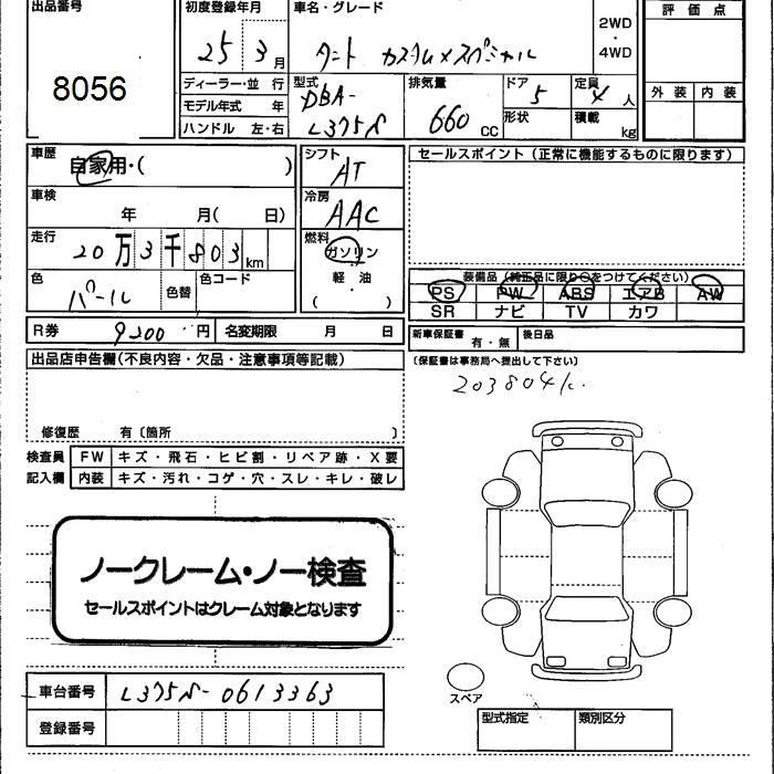 DAIHATSU TANTO 2013 г., лот № 8056