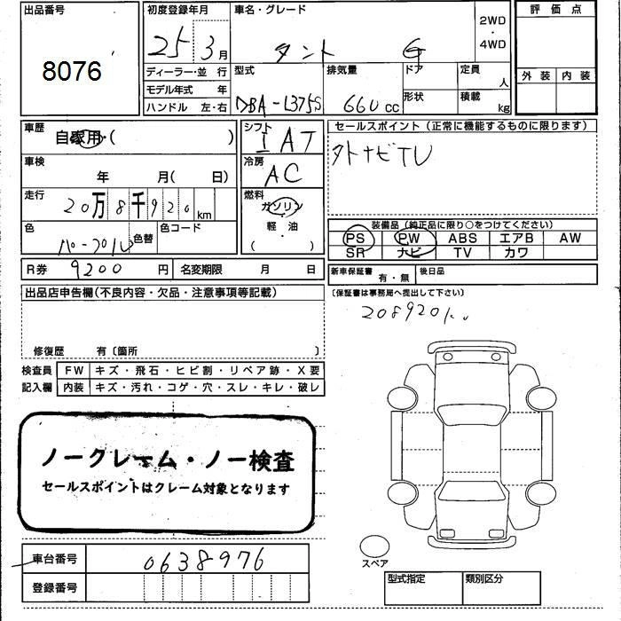 DAIHATSU TANTO 2013 г., лот № 8076