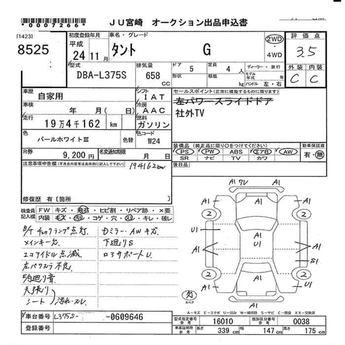 Год выпуска2012 Пробег 194 000 км КузовDBA-L375S КомплектацияG 2WD