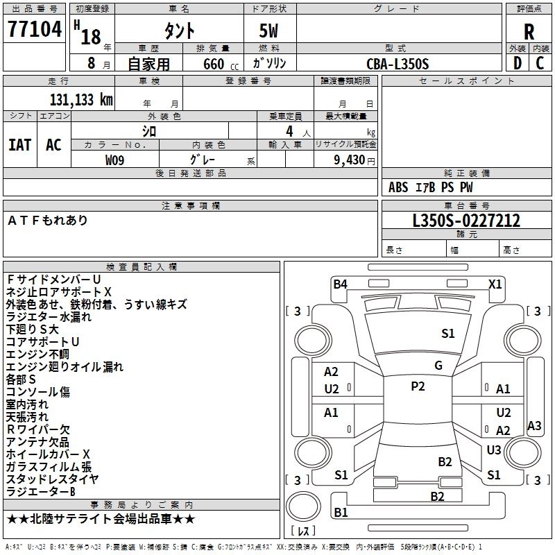 Статус выставлен на аукцион Лот 77104 Аукцион TAA Chubu Дата аукциона 19.03.2026