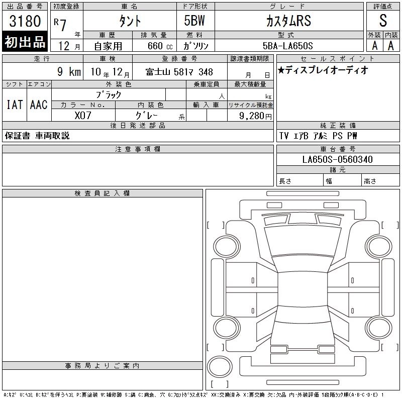 Статус выставлен на аукцион Лот 3180 Аукцион CAA Chubu Дата аукциона 18.03.2026