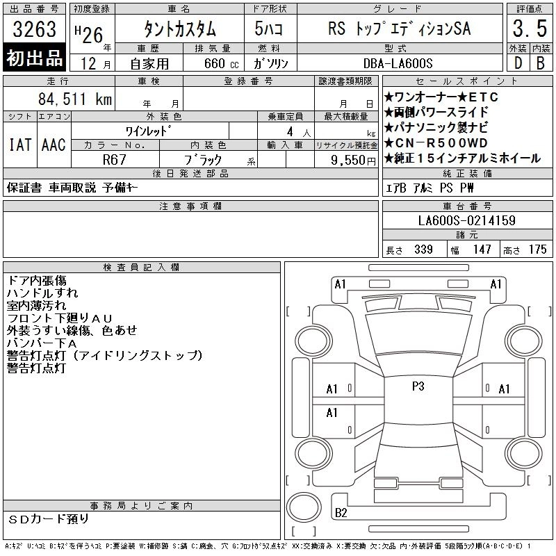 Статус выставлен на аукцион Лот 3263 Аукцион CAA Chubu Дата аукциона 18.03.2026