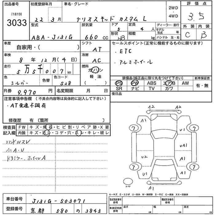 DAIHATSU TERIOS KID 2010 г., лот № 3033
