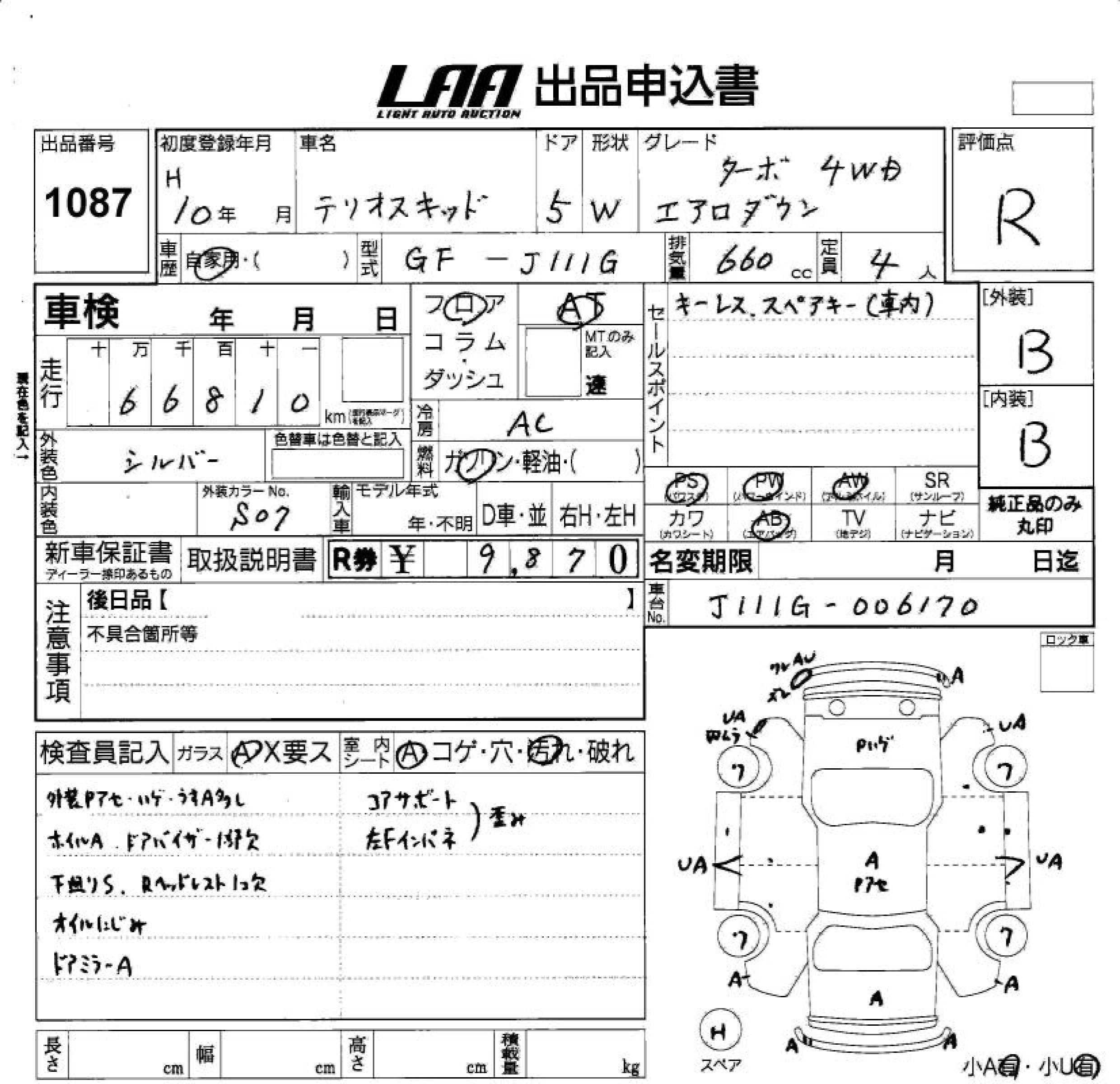DAIHATSU TERIOS KID 1998 г., лот № 1087