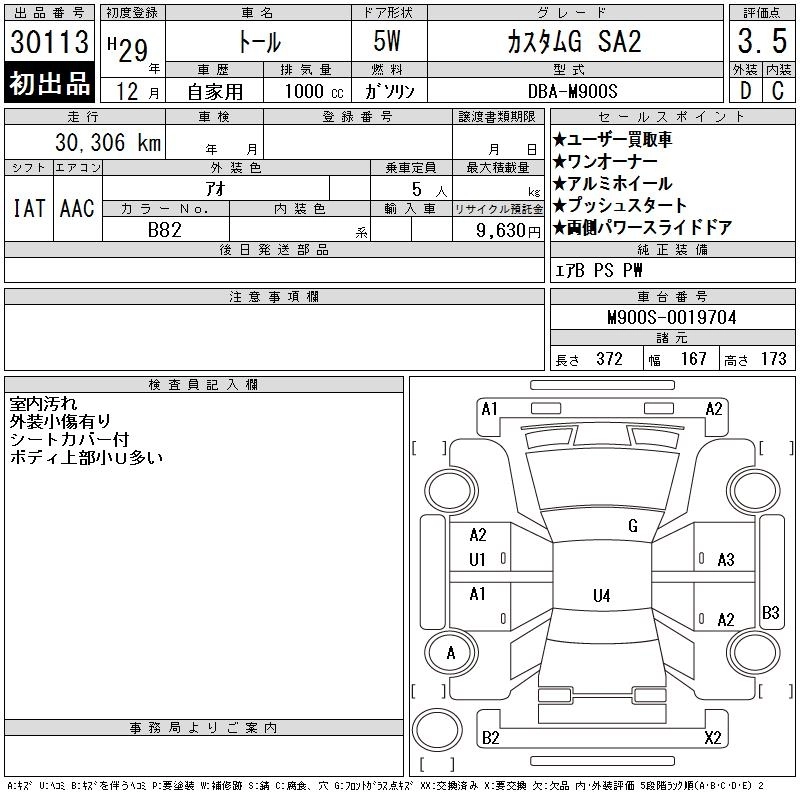 Год выпуска2017 Пробег 30 000 км КузовM900S Комплектация CUSTOM G SA2
