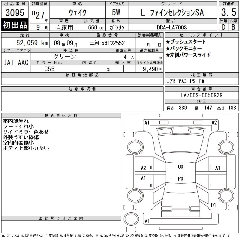 DAIHATSU WAKE 2015 г., лот № 3095